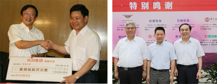 這是雨潤控股集團捐贈南京大學第二個五年計劃的開始。在2008至2012年度,雨潤已經完成五年共計150萬元的“祝義財助學金”的捐贈,前后一共資助了500位家庭貧困的莘莘學子。為了繼續支持南京大學本科教學改革計劃,今年雨潤控股集團又和南京大學續簽了捐贈協議,從2013至2017年五年間共計捐贈400萬元,每年80萬元,用于支持南京大學的發展。